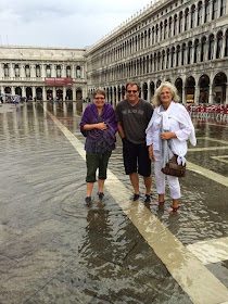 Presque un pas de danse sur les pavés de la Place Saint-Marc. Plus tôt dans la journée, en sortant de la basilique, une pluie avait fait déborder la Méditerranée et nous nous sommes retrouvés dans l'eau jusqu'aux chevilles. Nous pataugions dans l'eau froide avec la spontanéité d'enfants joyeux. La belle Venise est en danger d'immersion, elle s'enlise et cela nous rendait triste. J'aime penser que la grâce de Marie-Héllène, esquissant ce pas de danse dans une Venise encore palpitante de beauté... nous parle d'espérance pour sa sauvegarde.
